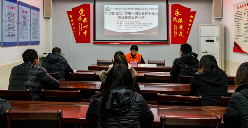 为推动习近平新时代中国特色社会主义思想进社区,2022年2月22日下午,我市在赤溪镇田头圩社区新时代文明实践站开展江门市第十四次党代会精神宣讲活动,赤溪镇理论宣讲团成员江晓华作专题宣讲。