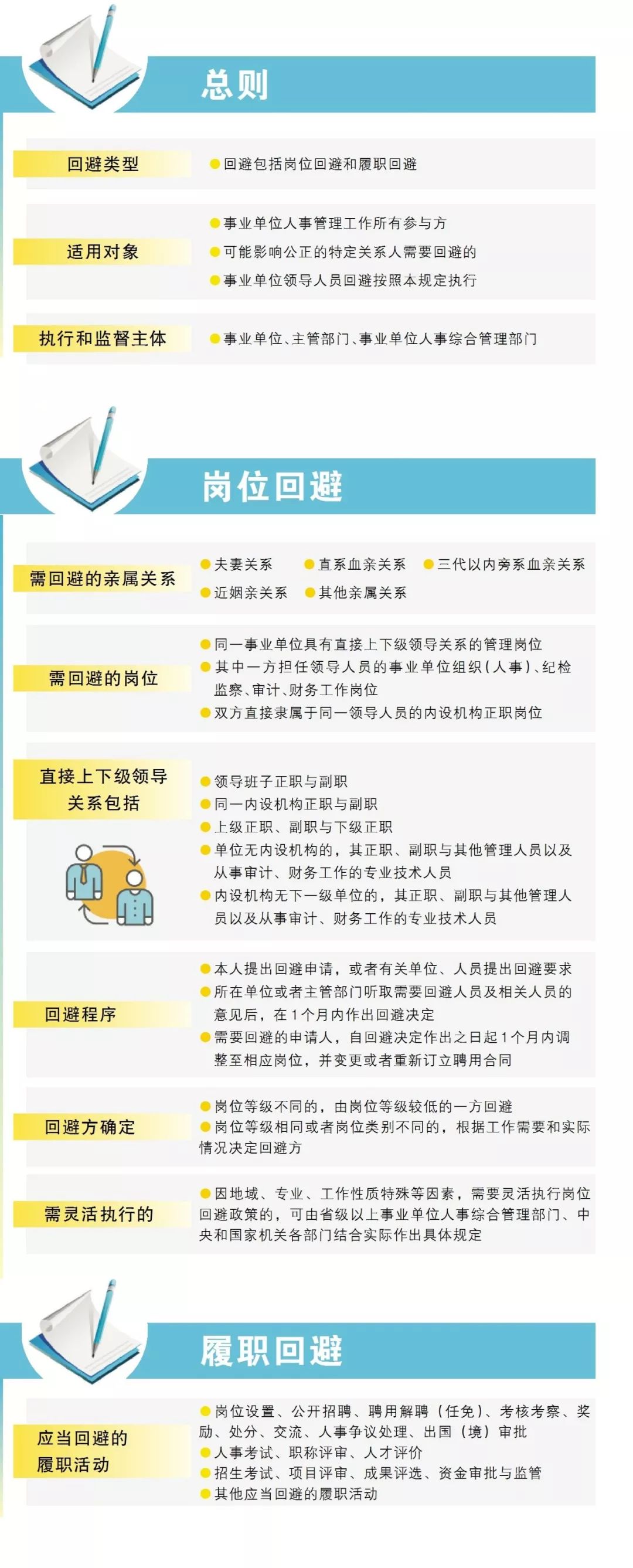 近日,中组部、人社部印发《事业单位人事管理回避规定》,明确建立统一的事业单位人事管理回避制度,从回避缘由、回避程序、回避事项和管理监督等方面,对事业单位人事回避进行了全面规范。