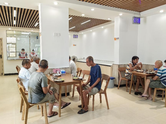 端芬镇端芬圩社区长者饭堂正式运营供餐,老人结伴进入长者饭堂用餐。端芬圩长者饭堂面积101平方米,就餐区整洁宽敞,最多可容纳约28人同时用餐。长者饭堂正式营业,为辖区老年人尤其是特殊困难老年人提供了营养丰富、品种多样、经济实惠、食材安全的饭菜,实实在在地帮助特殊困难群体老年人解决了就餐难题。