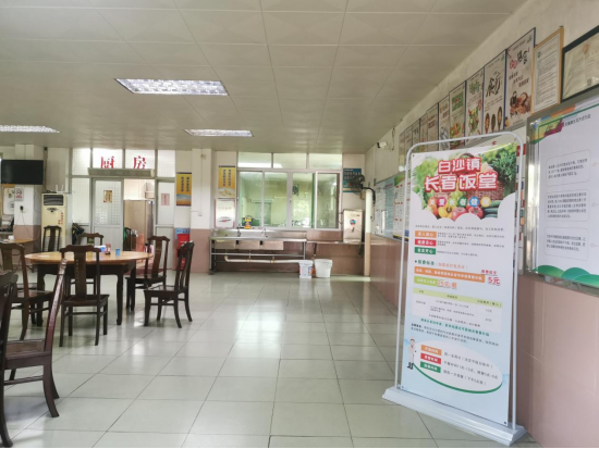 白沙镇长者饭堂位于白沙镇白沙圩东兴街18号,场地面积400多平方米。依托镇府饭堂,采用“干部职工+双百社工”送餐上门的模式,为白沙镇辖区的特困、低保、低收入、残疾等服务群体提供送餐服务,获得老人的一致好评。
