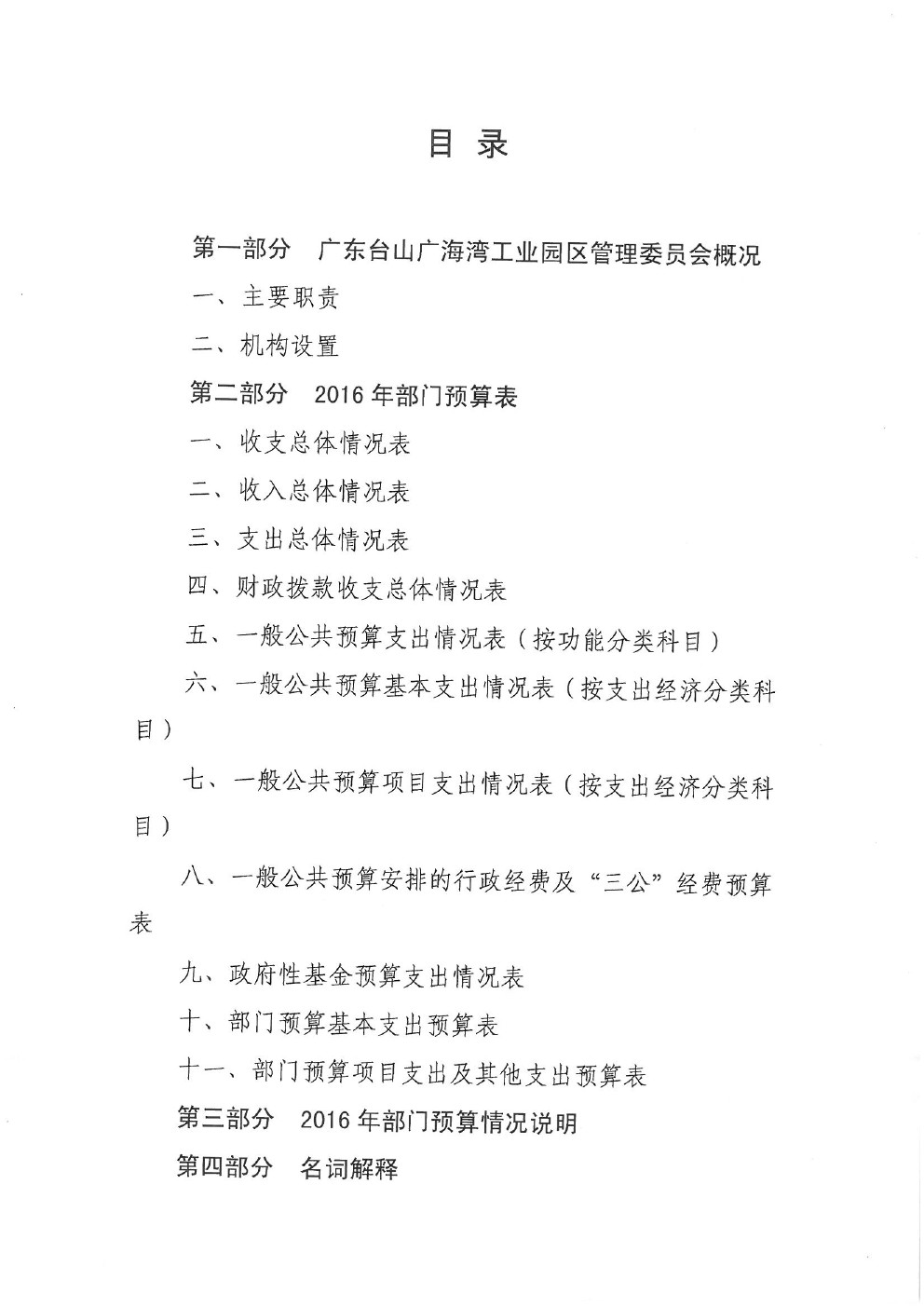 2016年度广东台山广海湾工业园区管理委员会预算公开