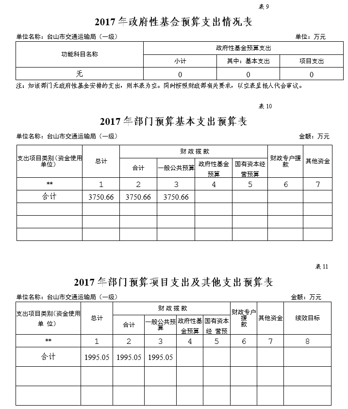 (二)台山市交通运输局内设机构有:办公室、财务审计股、安全监督股(交通应急办公室)、综合运输股、公共交通管理股、规划建设股、港航管理股、综合执法大队八个职能股室。