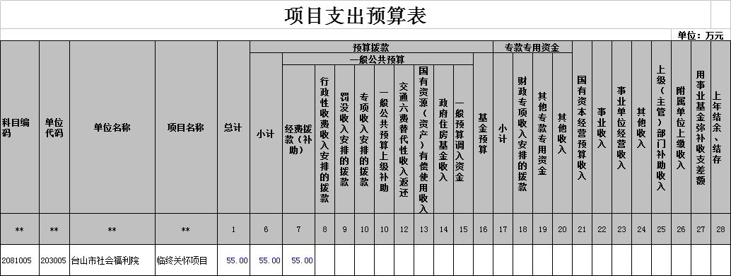 项目支出预算55万元,2018年新增项目,主要用于支出临终关怀项目。