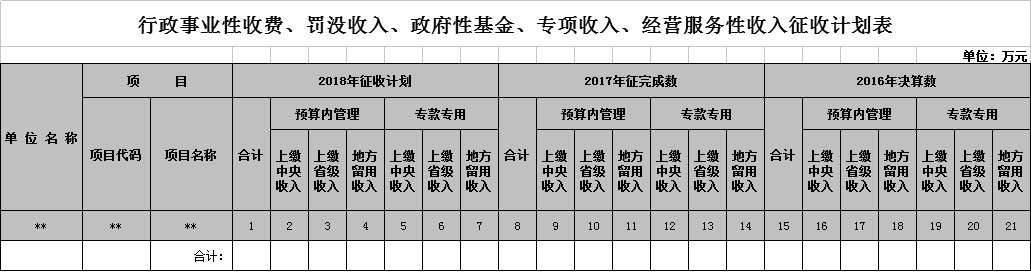 预算11表:行政事业性收费、罚没收入、政府性基金、专项收入、经营服务性收入征收计划表