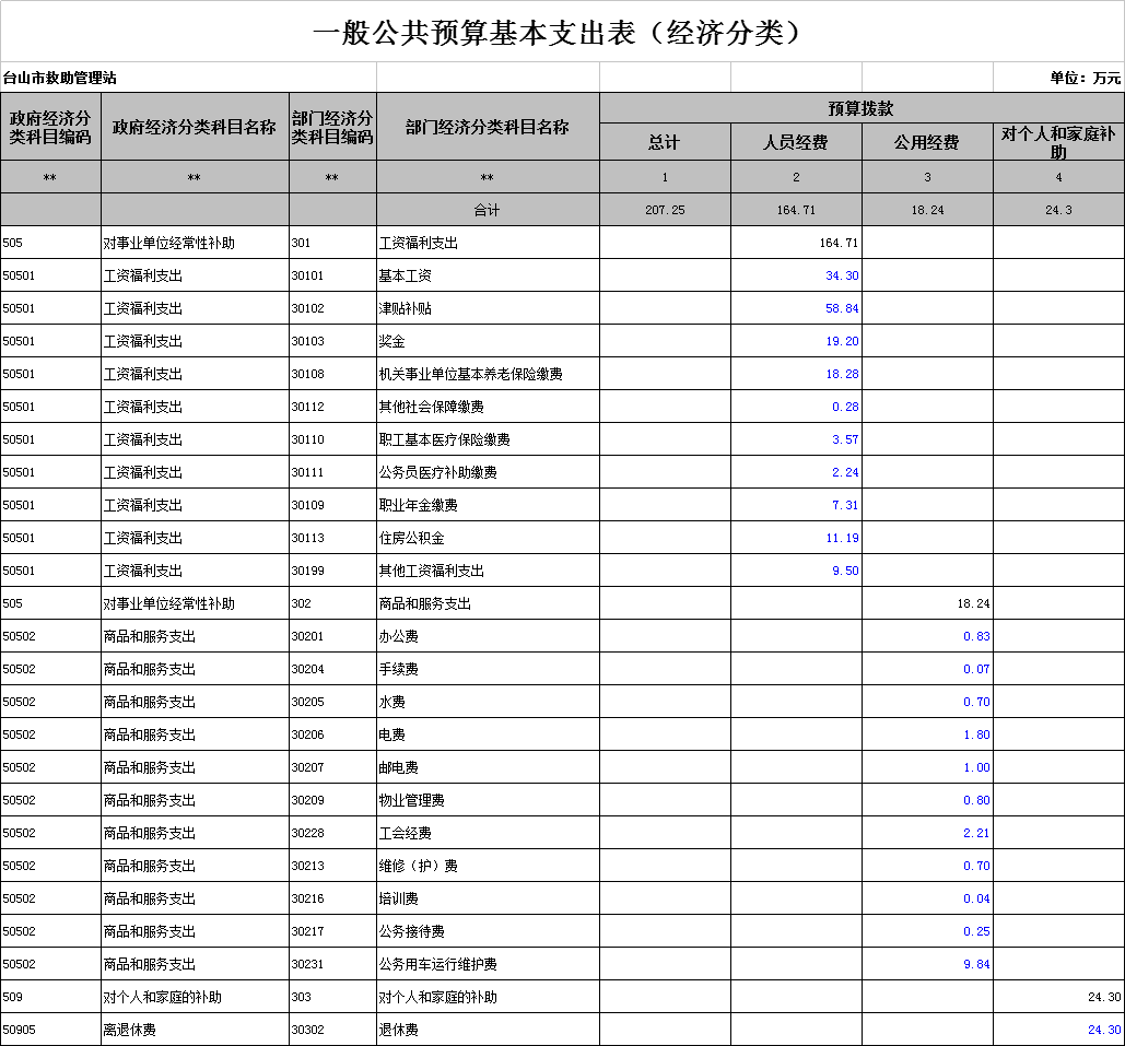 基本支出(含工资福利性支出、对个人和家庭补助支出和公用支出)207.25万元。