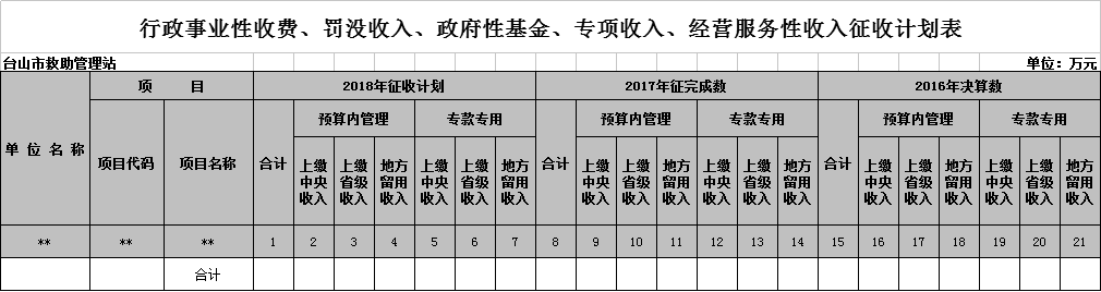 预算11表:行政事业性收费、罚没收入、政府性基金、专项收入、经营服务性收入征收计划表