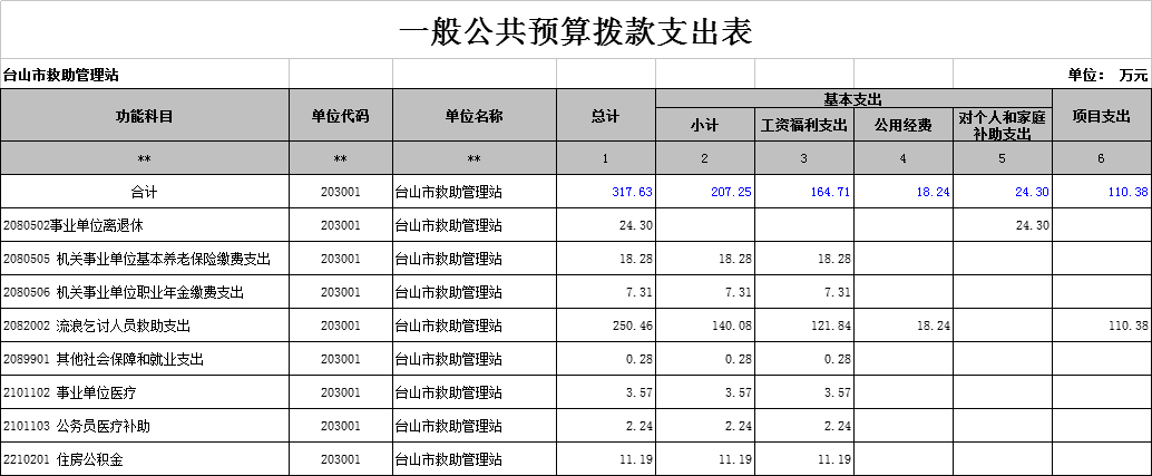 第一部分 2018年台山市救助管理站预算基本情况说明