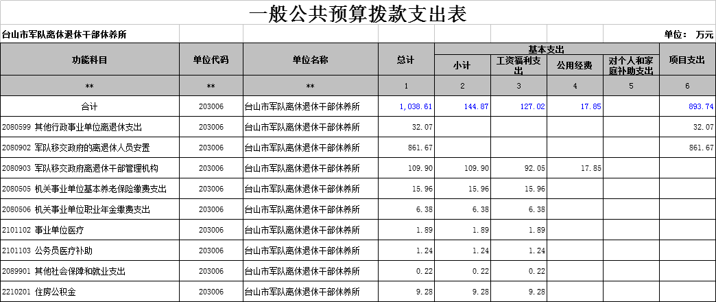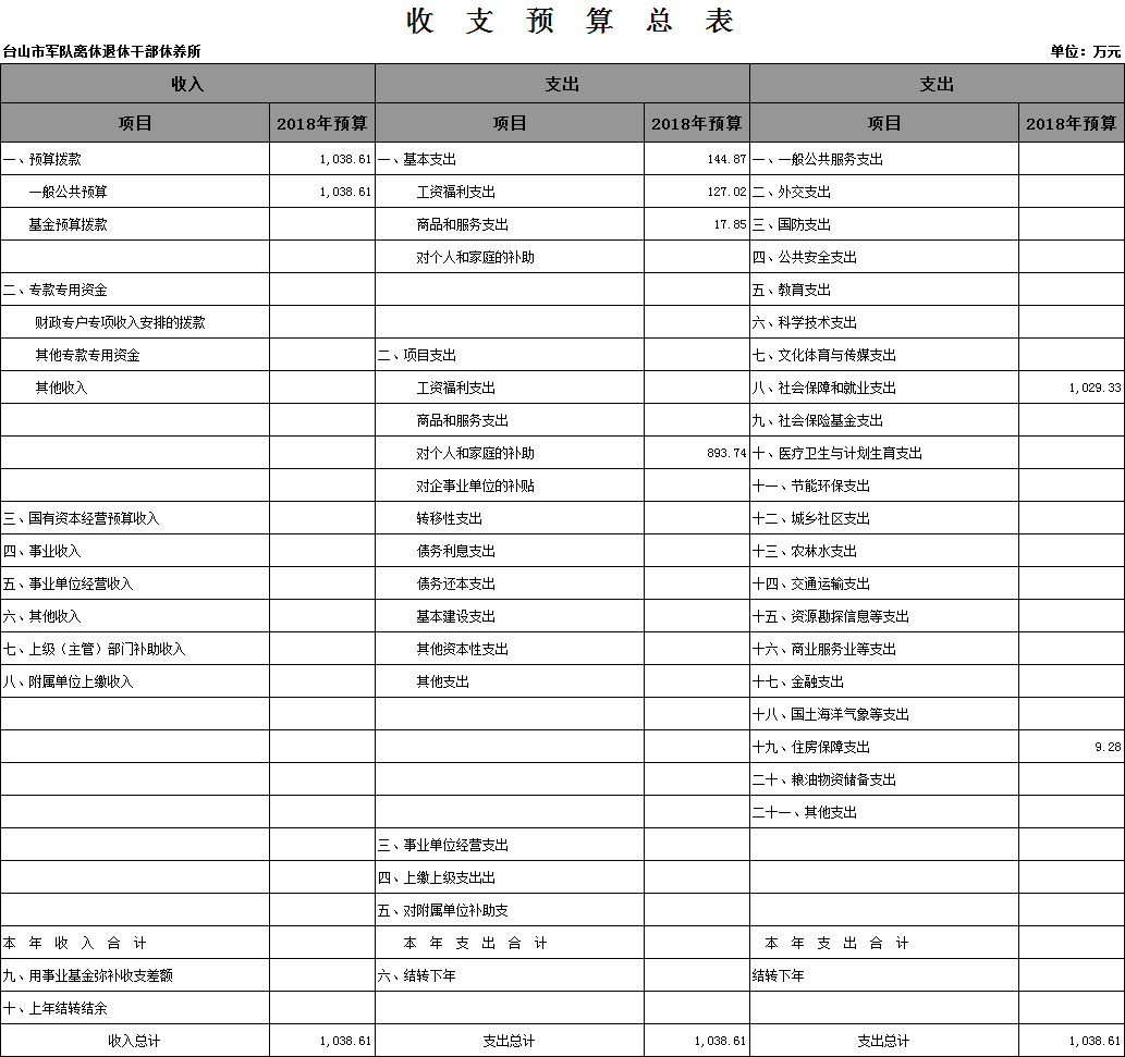 第二部分 2018年台山市军队离休退休干部休养所部门预算报表