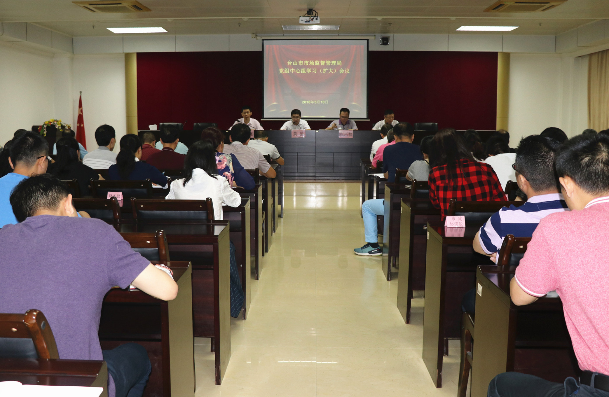 5月10日下午,我局召开党组中心组学习(扩大)会议,迅速传达学习贯彻习近平总书记对广东作出“四个走在全国前列”的重要讲话精神以及林应武书记专题辅导报告精神,力求全体党员干部学深悟透,把市场监管工作融入地方发展大局,建设美好幸福台山。局机关全体干部职工、各市监所正副所长、质监所正副所长参加了本次会议。(图/文  办公室  王证宇)