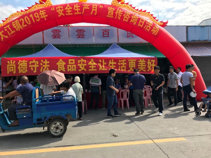 6月14日,大江市监所、水步食药监所会同市监局特设股,参加大江镇、水步镇2019年“安全生产月”现场宣传咨询活动。向企业和群众宣传特种设备监管、食品药品安全管理等知识,合力营造重视安全生产,共建平安台山的良好氛围。活动中,共派发安全生产知识宣传小册子100多本,电梯安全、食品安全、药品安全常识宣传单200多张。(图/文 大江市监所 唐少欢)