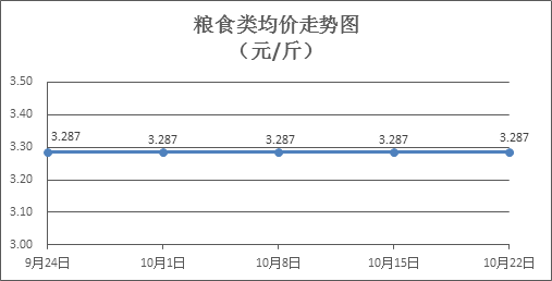 粮食类商品价格保持稳定。上周所监测的6种粮食类商品价格环比均持平,综合零售均价为3.287元/斤。其中:晚籼米、油粘米、标准粉零售均价分别为每斤3.24元、3.42元、3.15元,环比均持平。
