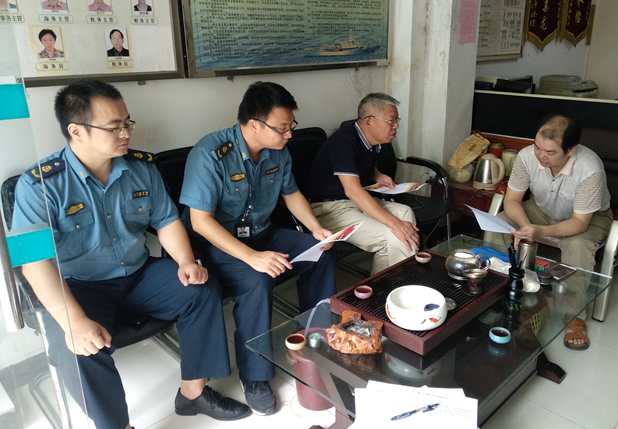为深入贯彻习近平总书记重要指示精神,全力打好扫黑除恶专项斗争攻坚仗,根据《台山市交通运输行业扫黑除恶专项斗争工作方案》部署,近日我局深入港航领域,对台山市南方船务、信和船务等9家船务公司以及公益港、中储粮台山分库专用码头等企业开展扫黑除恶线索摸排和夏季安全、污染防治大检查工作。重点摸排了以下线索:一是在水路运输领域采取打、砸运输工具以及滋扰、纠缠、哄闹、聚众造势等手段破坏运输秩序的黑恶势力;二是采取暴力、胁迫、恐吓等手段非法垄断、控制道路水路运输领域的黑恶势力;三是在港口、码头等场所欺行霸市、强买强卖、收保护费的行霸、市霸等黑恶势力。此外,我局派发了《重拳出击铲除黑恶——台山市交通运输行业在行动》宣传单张,要求企业张贴在经营场所的醒目位置,并通过微信群等渠道把宣传单张内容传达给广大船员,切实提高港航领域对扫黑除恶工作的知晓率与参与率。