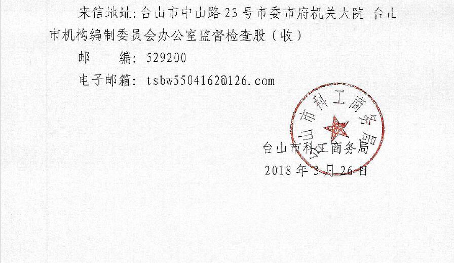 台山市科工商务局2017年度行政许可实施和监督管理情况公示公告