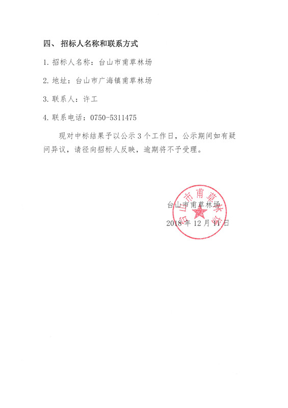 【公告】2018年湿加松采穗圃抚育工程中标公告
