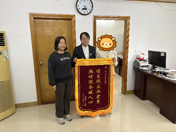 “谢谢叔叔阿姨给我申请了福利补贴,谢谢你们!”2025年2月11日台城街道小棋(化名)向市民政局工作人员递上印有“情系群众办实事 热情服务暖人心”的锦旗。