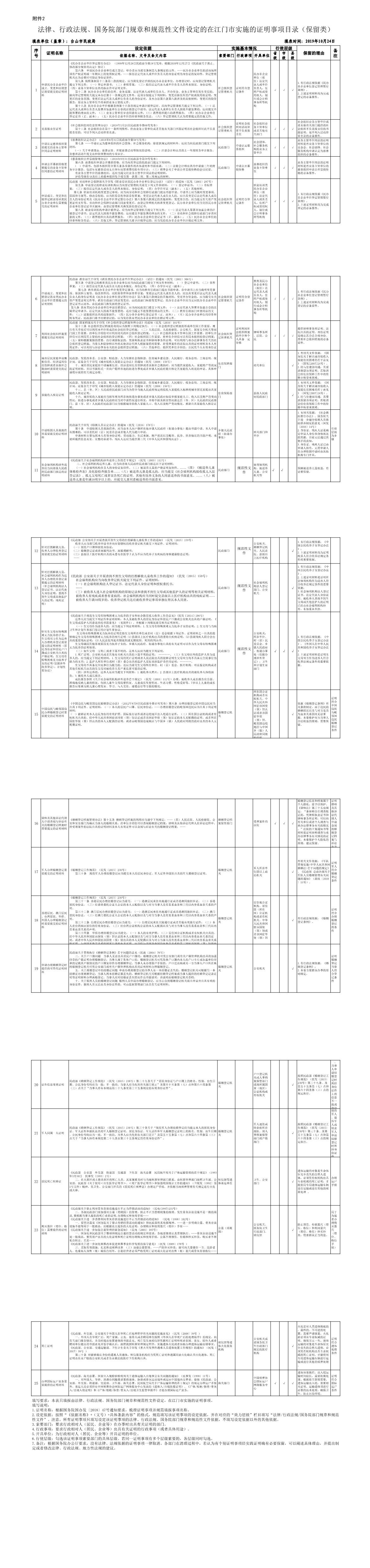 台山市民政局法规、行政法规、国务院部门规章和规范性文件设定的在江门市实施的证明事项目录(保留类)