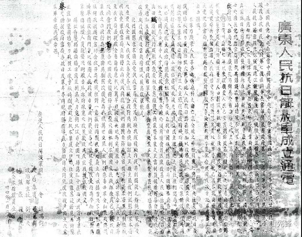 广东人民抗日解放军成立通电