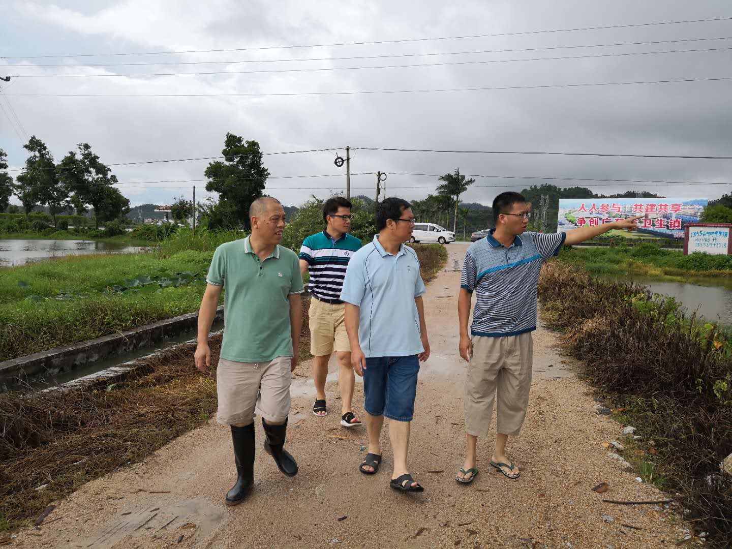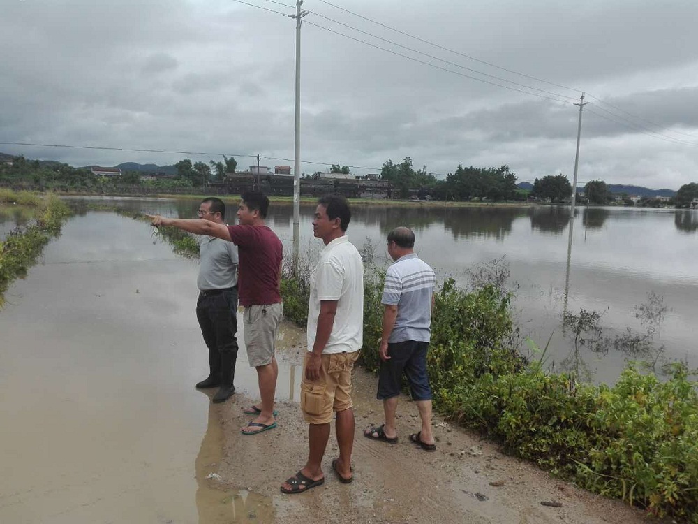 第一组在周坚校局长带领下,奔赴西南片海宴、汶村、北陡、深井等镇实地查看灾情,四镇由于海水涨潮,排水困难,稻田受浸面积较大,总计约5万亩。周坚校要求,根据气象预测,未来3天将持续降雨,各镇农业部门要高度重视,迅速落实排洪排涝措施,组织力量抢修被灾害、洪水毁坏的排灌系统等水利设施,加强水稻、蔬菜、水果等农作物复产技术措施,抓好病虫害的防治,及时做好救灾复产各项工作,保障人民群众的生命财产安全。