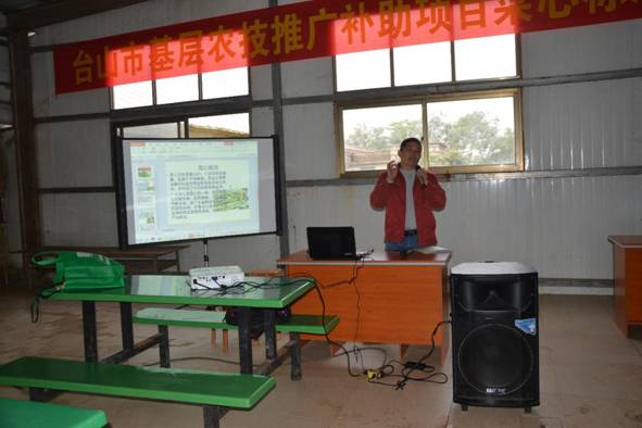 近日,市农业局在海宴农艺农业有限公司举办台山市基层农技推广补助项目菜心标准化技术培训班以及现场观摩会。江门市质监局标准化科杨文钊科长、市农业局质监科杨瑞仪副科长,以及市农业局、海宴镇农办和蔬菜种植大户、农艺公司相关人员和蔬菜示范户共100多人参加本次培训班。