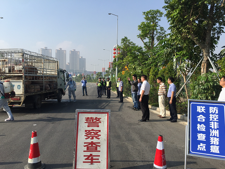 各镇(街)也迅速响应,纷纷行动,连续作战,组织开展道路设卡检查、疫情排查和灭原消毒等各项非洲猪瘟防控措施。