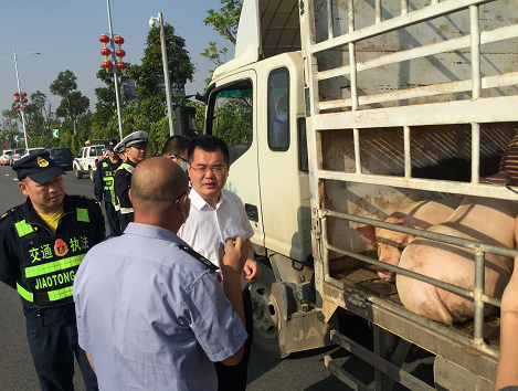 北陡镇:共派出8名人员在进入台山市境内的重要路段分设3个检查点,检查过往运猪车辆13车次。