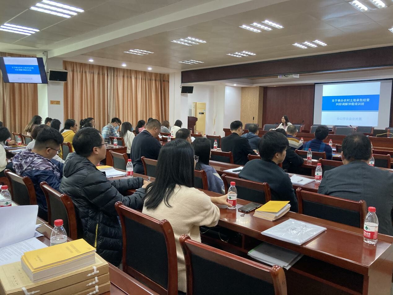 为贯彻落实《台山市农村土地承包经营纠纷调解仲裁员培训工作实施方案》,加强我市农村土地承包经营纠纷调解仲裁培训工作,推动培训工作制度化、规范化、标准化建设,妥善化解承包经营纠纷,促进农村经济发展和社会和谐稳定。12月10日上午,市农业农村局举办了农村土地承包经营纠纷调解仲裁培训班,各镇(街)分管农村土地承包经营纠纷调解仲裁工作的领导和调解仲裁员共60多人参加了会议。
