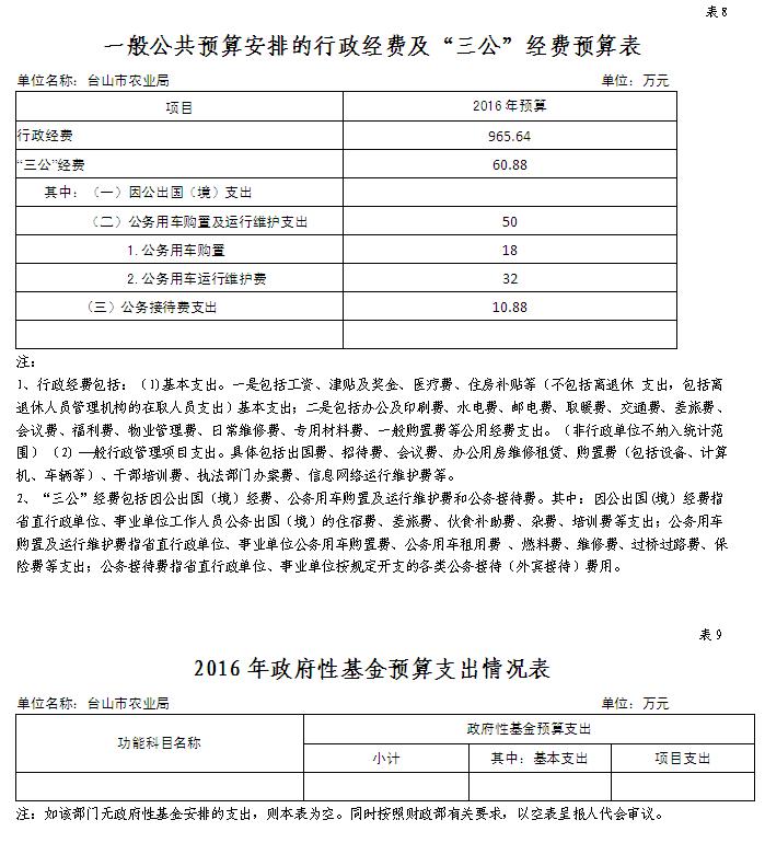 八、一般公共预算安排的行政经费及“三公”经费预算表