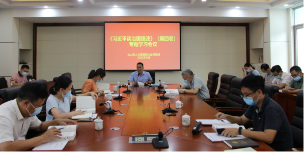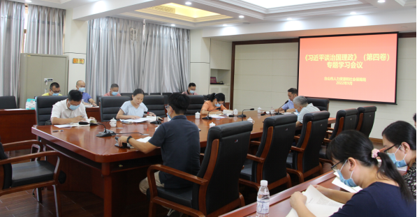 会议专题学习《习近平谈治国理政》第四卷的《坚持人民至上》一文,要求人社系统全体干部职工认真领会文章内涵,扎实做好人社系统工作,持续保障和改善民生,稳定就业大局,化解劳资领域纠纷,提供优质服务,切实保障民生。