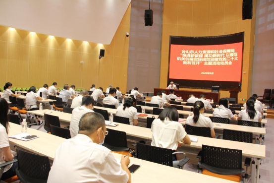 9月29日,市人社局在大广海湾青创智谷开展“奋进新征程 建功新时代 以模范机关创建实际成效迎接党的二十大胜利召开”主题活动动员会,市人社局党组班子成员以及局机关、社保、人才办、就业中心、仲裁院副股以上干部和市技校班子成员共50多人参会。