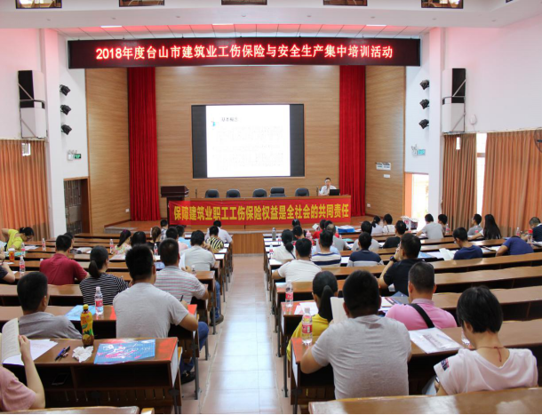 为做好我市2018年度建筑业工伤保险工作,切实维护建筑业职工工伤保险权益,2018年8月23日下午,市人社局联合市住建局、市安监局、市水务局、市交通运输局、市总工会在台山市开放大学举办2018年度台山市建筑业工伤保险与安全生产集中培训活动。