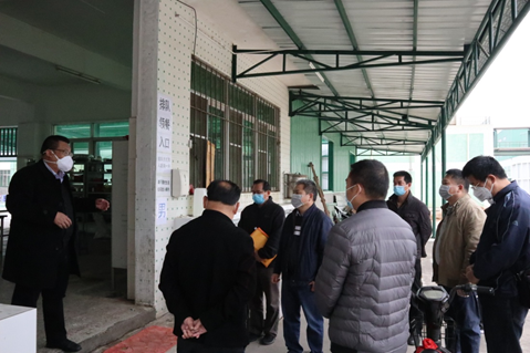 (企业复工专责小组在企业内检查食堂相关防疫措施)