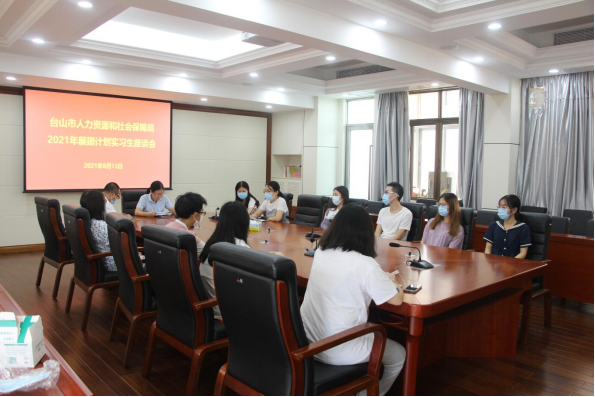 市人社局肖雄英副局长指出,稳就业保就业是“六稳” “六保”之首,高校毕业生就业创业工作是人社就业工作的重点内容。市人社局认真贯彻落实全国高校毕业生就业创业电视电话会议精神,多措并举做好高校毕业生就业创业工作:一是加大援企稳岗力度,保障吸纳高校毕业生就业的市场主体责任。二是全方位提供精准服务,满足高校毕业生多元化求职需求。三是切实做好“三支一扶”等基层服务项目,鼓励高校毕业生到基层就业。四是加大企事业单位招聘力度,畅通毕业生进入国有企事业单位的渠道。五是大力组织实施青年见习计划,进一步提升高校毕业生职业技能和适岗能力。六是加强对生活困难、就业困难高校毕业生的精准帮扶,促进“双困”高校毕业生及早就业。希望这段简短的实习经历,能对他们日后就业创业有所帮助,寄语他们在日后努力学习,毕业后返回台山就业,为台山经济发展作出贡献。