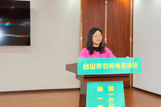 农村电商协会第一届会长李清当选后,在会上代表新一届领导机构作发言。她表示台山市农村电商协会将从提升技能、深耕特色品牌、把牢食品安全关这三个方向努力,打破传统线上纯电商做法,通过线上线下结合的方式,以打造侨乡特色文化的农业品牌新业态模式为切入点,向健康生态圈发展。理事会将尽最大努力服务好各会员单位,共同营造良好的营商环境,为社会健康发展、为台山乡村振兴贡献一份力量。