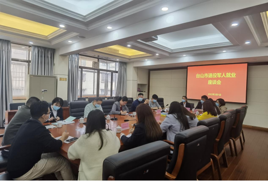 座谈会上,台山市人社局副局长肖雄英从退役军人就业创业、技能培训、职业资格证书考取等方面对退役军人有关就业创业政策进行解读,同时也介绍了我市部分重点用工企业为我市退役军人就业提供的相关岗位情况。台山市退役军人事务局副局长陈亦洪详细介绍了当前退役军人的情况,并希望各企业积极承担社会责任,转变对退役军人的固有印象,为退役军人提供更优质的岗位。相关企业代表就当前各自的用工需求进行介绍,并就退役军人就业提供相关建议,希望职能部门根据企业当前的用工需求,尤其是技能人才方面多提供支持,联合企业通过考取证书发放补贴、岗位晋升、薪酬奖励等方面激励退役军人提升技能,从而满足企业技能人才的需求。台山万达广场在会上表示愿意支持我市退役军人就业宣传工作,提供公益展示场地或滚动电子屏幕,加强宣传效果。