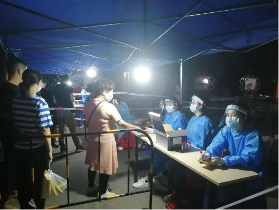 疫情就是命令,防控就是责任。3月14日晚,为配合社区做好东方豪苑小区核酸检测工作,市人社局第一时间组织15名党员干部穿上义工服,戴上口罩,奔赴现场。在时间紧、任务重的情况下,党员干部们耐心为小区居民答疑解惑,协助小区居民生成葵花码,维持现场秩序,用热情周到、贴心暖心的服务,积极为群众办实事、解难题,用甘当抗“疫”螺丝钉的精神凝聚人社力量,展现担当作为。