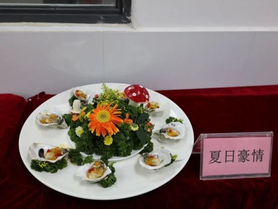 本次比赛邀请广东省三星级粤菜师傅陈本领、乡村工匠烹饪专业工程师黄海源和倪锐新担任评委。比赛现场,参赛选手们各施所长,使出看家本领,展示精湛技艺,打造色香味俱全的“蚝”门盛宴,给评委和观众带来视觉和味觉的双重享受。经过评委严谨细致的评选,本次评选出特金奖一名、金奖三名、一等奖七名,其中黄科传老师的作品“侨乡之路”获得此次竞赛的特金奖。