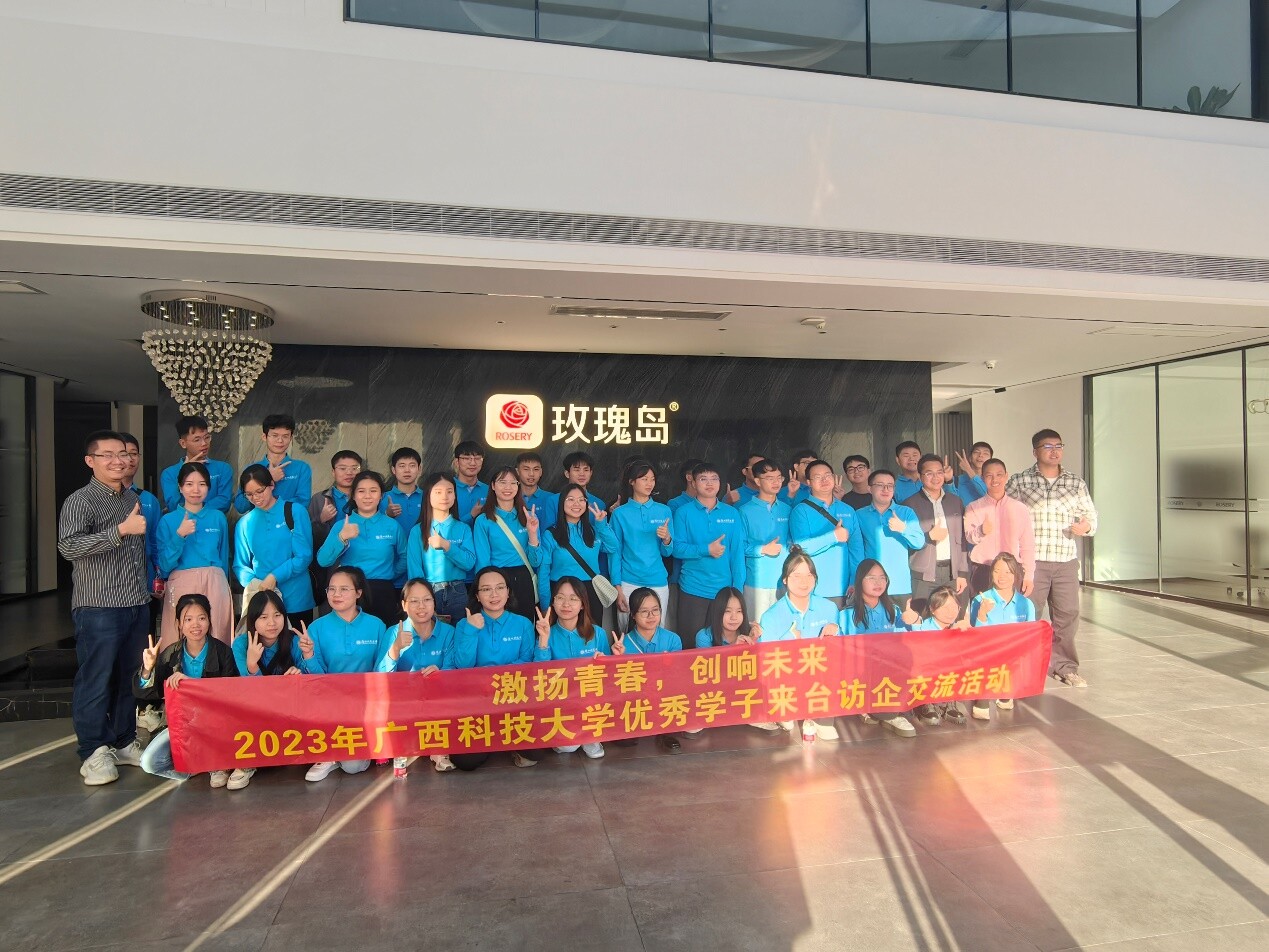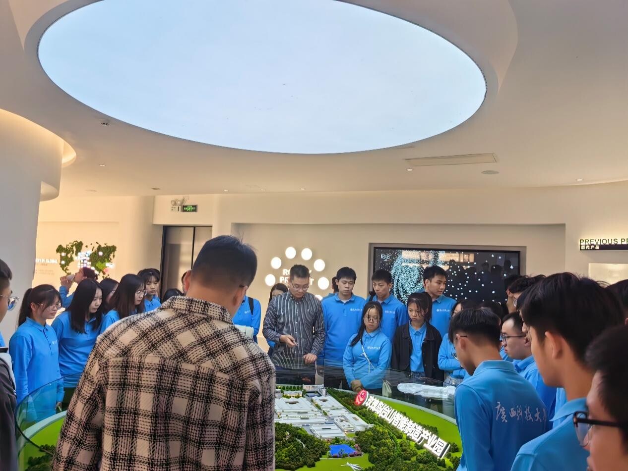 接着先后前往台山市工业新城管理委员会、台山市松田电工(台山)有限公司、广东鸿特精密技术(台山)有限公司、台山市冠兴金属有限责任公司、台山市金桥铝型材厂有限公司、台山市广生家居用品有限公司、广东玫瑰岛卫浴科技有限公司等重点企业参观调研,对各企业的展厅、生产车间、实验室等进行参观,了解各种产品生产流程和数智化的设施设备。在参观期间,企业相关负责人向广西科大的师生介绍员工的工作时长、薪酬待遇、假期保障、生活环境等情况。校企双方也一边交流探讨学生顶岗实习、见习就业和企业技术创新和生产运用等方面的合作意向。