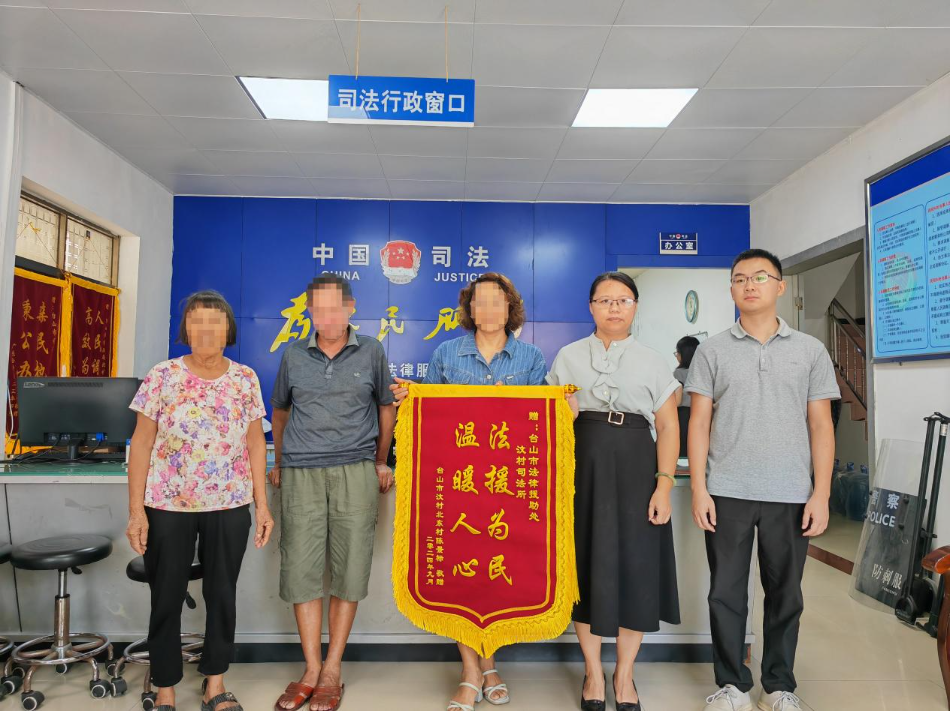 “民政部门已经受理我们的特困救助供养申请了,非常感谢你们的帮助。”受援群众陈某在其家属的陪同下,满怀感激向台山市法律援助处和汶村司法所赠送写有“法援为民 温暖人心”的锦旗,以表谢意。