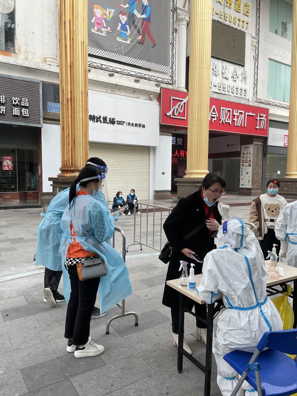 在检测一线,党员志愿者听从指挥分赴各个岗位,协助社区和医护人员维持排队秩序,指导群众使用微信“扫一扫”粤核酸的葵花码,录入核酸检测预约资料等准备工作。对于没有智能手机的老人家,党员志愿者在现场用自己的手机帮老人家形成核酸检测葵花码并打印,引导老人走绿色通道快速完成核酸采样。1月15日核酸检测工作一直持续到晚上12时,当晚天气寒冷,党员志愿者至始坚守岗位,争分夺秒,一刻不停协助做好有关工作,为核酸检测顺利有序高效进行提供了坚实支撑。