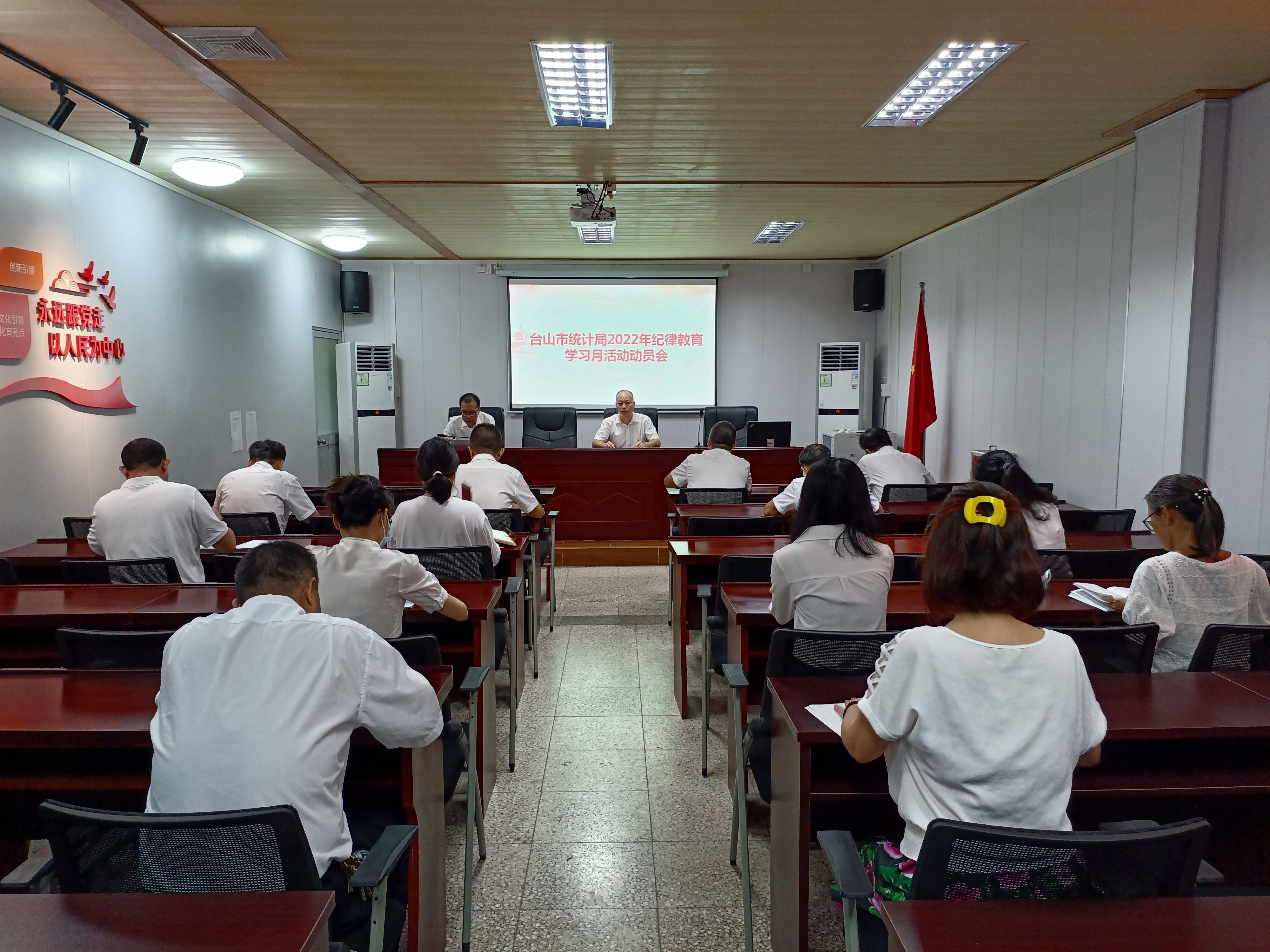 8月15日,市统计局召开纪律教育学习月活动动员会,传达《中共台山市委办公室关于印发〈2022年全市开展纪律教育学习月活动的实施意见〉的通知》文件精神和我局活动方案要求,对我局今年开展纪律教育学习月活动进行动员部署。党组书记、局长黄卫松作动员讲话,全体党员干部参加会议。