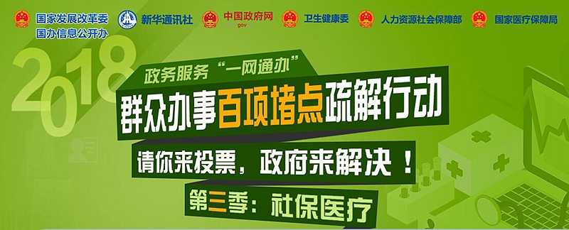 7月6日起,国家发展改革委、国办信息公开办、新华社、中国政府网、卫生健康委、人力资源社会保障部、医疗保障局等7部门和单位联合发起第三季堵点问题征集活动,聚焦社保医疗领域办事堵点问题。请结合自身所遇到的涉及看病就医、养老金认证、报销生育相关费用等经历参与投票。所征集的信息经大数据分析后,我们将选择群众反映最强烈的20个“堵点”问题,推动有关地方、部门限时解决。