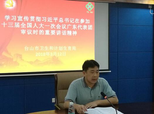 会上,党组书记、局长郑品辉领学了习近平总书记在参加十三届全国人大一次会议广东代表团审议时发表的重要讲话精神以及中共广东省委的贯彻落实意见。郑品辉指出,习近平总书记亲临广东代表团审议时发表的重要讲话是具有重大政治意义和深远历史意义的,一是充分肯定了广东工作取得的成绩,二是为广东工作作了一次全方位的有效诊疗,三是有助于推动广东在中国特色社会主义新时代中再上新台阶。最后,他强调,要切实把学习宣传贯彻习近平总书记重要讲话精神作为当前和今后一个时期的首要政治任务,迅速掀起学习宣传贯彻热潮,以切实行动推动我市卫生计生工作再上新台阶,取得新发展。(办公室 邓悦明)