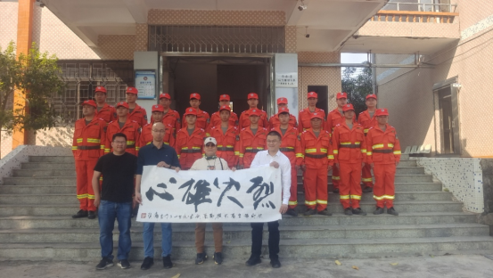 李日辉大师挥毫书写了“烈火雄心”四个大字,字体刚劲沉稳、气势磅礴,以此激励应急救援队员坚守岗位、恪尽职守,以更饱满的热情投入到森林消防和抢险救援工作中去;热心企业广东辰焱科技有限公司负责人韦发友、麦雪霞感谢救援大队在灭火救援、抢险救灾、志愿服务等方面做出的积极贡献,鼓励他们继续保持优良作风和光荣传统,永远听党话、感党恩、跟党走,为保护人民生命和财产安全作出新的更大的贡献。