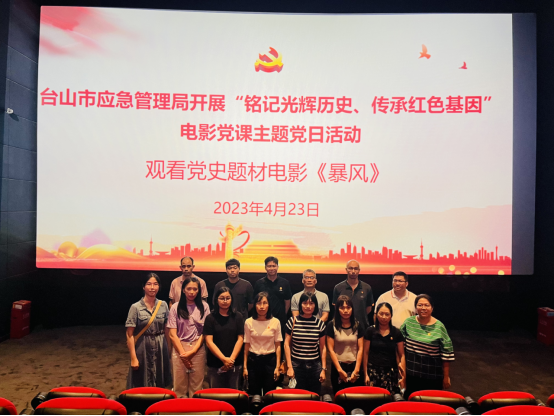 4月23日,市应急管理局组织干部职工集体观看优秀粤产红色谍战电影《暴风》,影片以20世纪30年代中央红色交通线上的汕头秘密交通站为故事背景,讲述共产党隐蔽战线的革命先烈用鲜血和生命夺取胜利的英雄故事。
