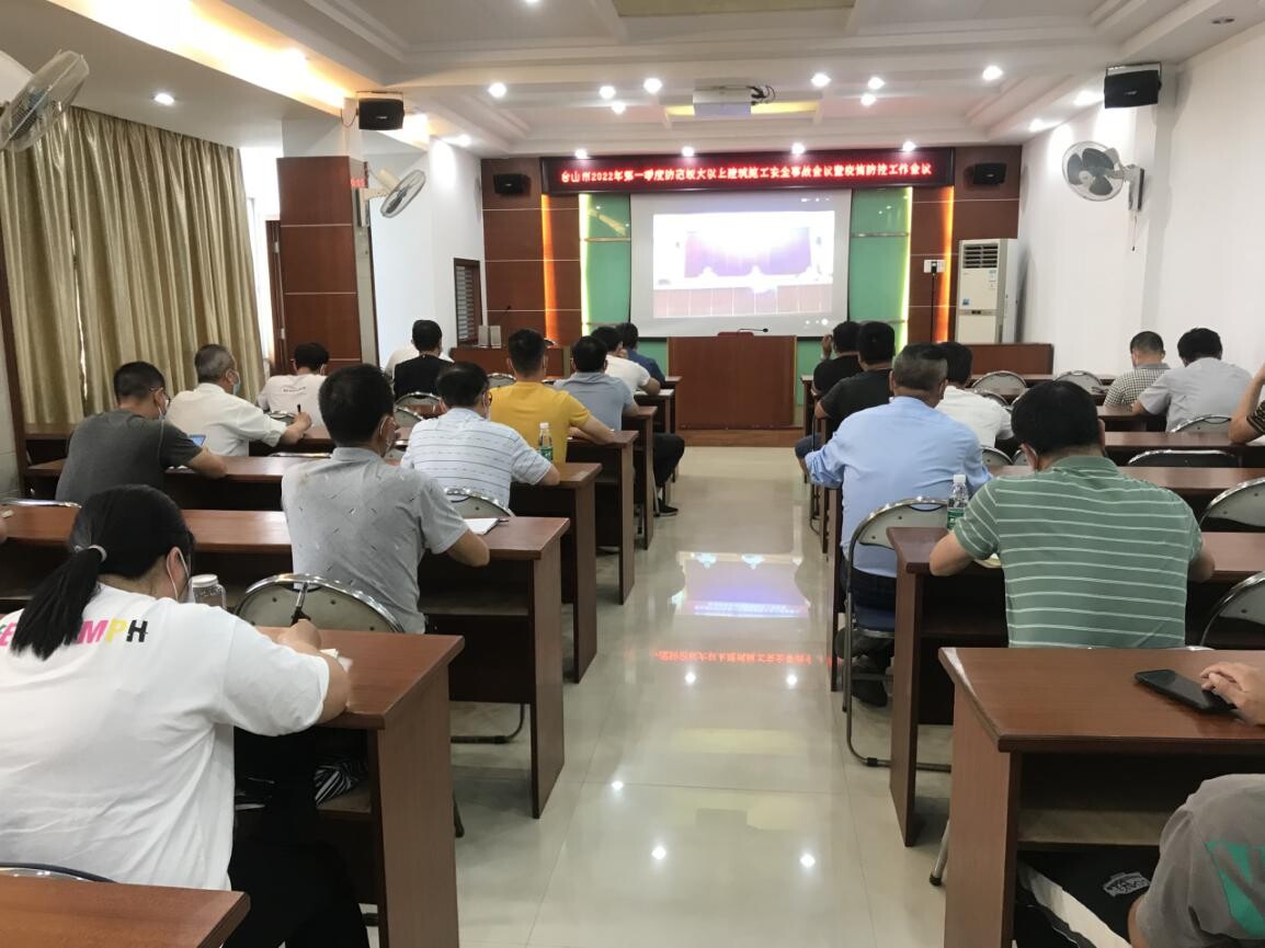 3月17日下午,市住建局召开台山市2022年第一季度防范较大以上建筑施工安全事故会议。会议主会场设在市住建局,分会场设在市质安站,其他项目管理人员通过视频连线方式参会。会议由市住建局党组成员、副局长谭人任主持,建筑工程监管股股长吴育龙,质安站站长王宇南,以及质安站、建管中心副职以上领导和我市各房地产开发商、施工单位、监理单位的项目负责人、项目总监等共约200人参加会议。