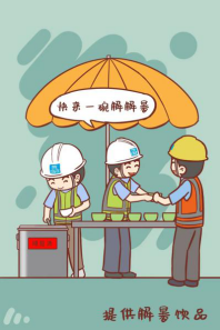 一、提醒施工企业加大防暑降温工作,采取“做两头、歇中间”方法或轮换作业的办法,避免高温日照曝晒、疲劳作业和防止职工中暑。