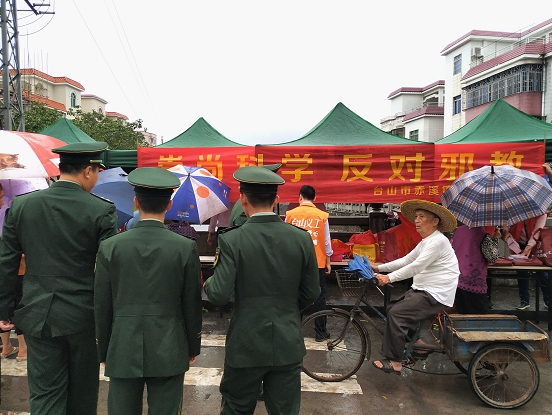 为进一步弘扬宪法精神,维护宪法权威,推动全社会树立“尊崇宪法、学习宪法、遵守宪法、维护宪法、运用宪法”的法治意识,近期,赤溪镇政府组织镇综治办、扫黑办、平安办、禁毒办、防范办、司法所、赤溪边防派出所、镇妇联等部门,利用早上群众赶集的机会,在赤溪圩开展了2018年“12.4”国家宪法日集中宣传活动。