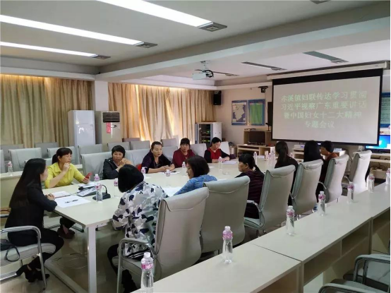 会议传达学习了习近平总书记视察广东重要讲话精神,赵乐际在中国妇女第十二次全国代表大会上的致词,黄晓薇在中国妇女第十二次全国代表大会上的报告,全国妇联主席沈跃跃在全国妇联十二届一次执委会议第二次全体会议的讲话精神。