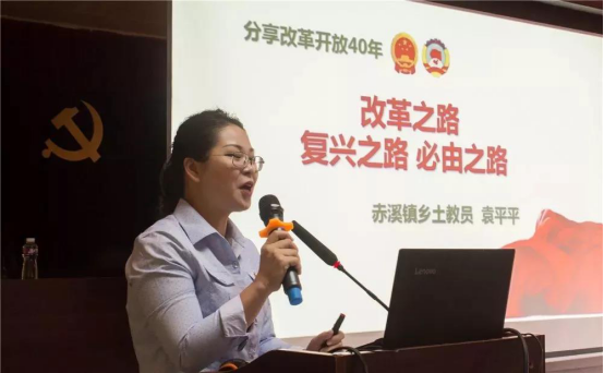 宣讲人赤溪镇乡土教员、镇党校兼职教师袁平平同志用最亲切的客家乡音与大家共同回顾改革开放四十年来赤溪的发展进步。