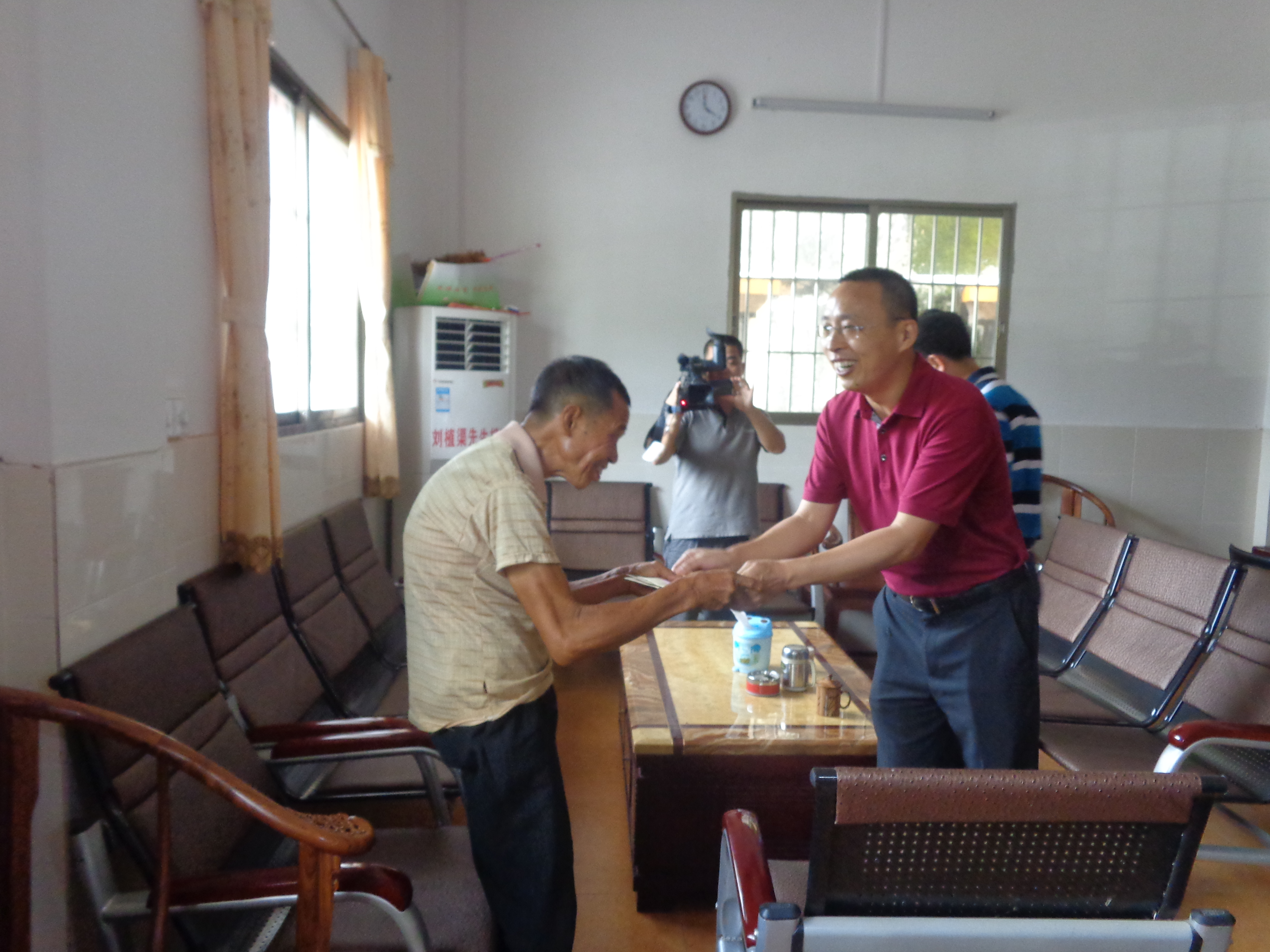 副市长余中华一行到乔庆村委会、新塘村委会走访慰问孤寡老党员刘锡和、刘番灼,深入新塘村委会新塘村、锦龙村、环塘村走访慰问贫困户刘介铭、刘永强、刘卫生,与他们促膝交谈,详细询问了他们的身体状况及家庭情况,积极帮助他们排忧解难,并给他们送上慰问金和油、米等慰问品。